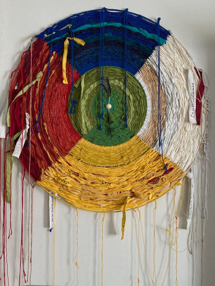 All of this was made in co-creation with the participants. The work became a red — or rather, multicolored — thread running through the four-day festival. Wishes and intentions were woven into the wheel, messages were hung on the branch. Interventions that charged the work with tangible meaning and energy.
